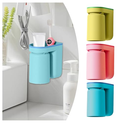 3 Stück Zahnputzbecherhalter Ohne Bohren Wandzahnbürstenbecher-Set,Zahnbürstenhalter Zahnputzbecher Wand mit Becher Toothbrush Cup Holder Zahnbürstenhalter Zahnputzbecher Halter