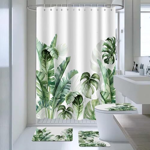 Unser 4-teiliges Set besteht aus einem tropischen Palmblatt-Duschvorhang, rutschfesten Teppichen, einem WC-Deckelbezug und einer Badematte. Diese moderne Badevorhänge ist nicht nur pflegeleicht, sondern auch umweltfreundlich und schadstofffrei.