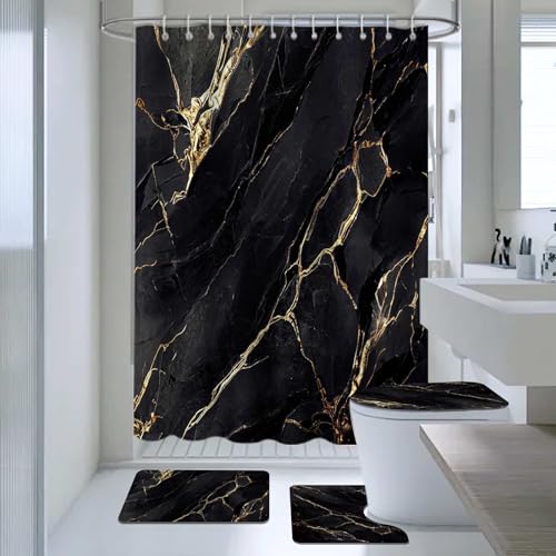 Das AIBIIN Marmor Duschvorhang-Sets ist ein atemberaubendes 4-teiliges Set, das Ihren Badezimmer eine elegante Note verleiht. Mit seiner abstrakten schwarzen Farbe und den rutschfesten Teppichen wird Ihr Badezimmer zu einem wahren Paradies der Entspannung.