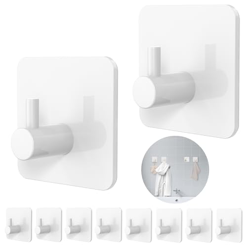 Aikzik Handtuchhalter ohne Bohren, 10er Set, Badezimmer Handtuchhalter aus ABS, hochwertige Klebehaken, langlebige Haken selbstklebend, ideal als funktionale Wandhaken, Weiß