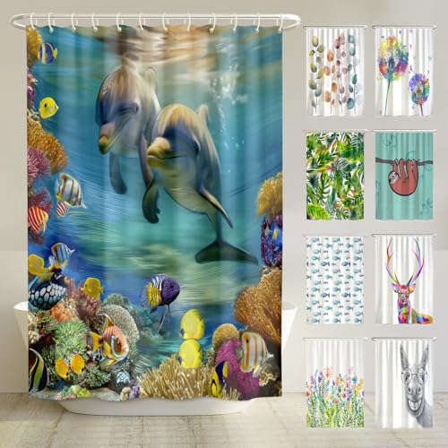 arteneur® – Delfine – Anti-Schimmel Duschvorhang 180×200 – Recycelt mit Öko-Tex Standard 100 – Beschwerter Saum, Blickdicht, Wasserdicht, Waschbar, 12 Ringe & E-Book