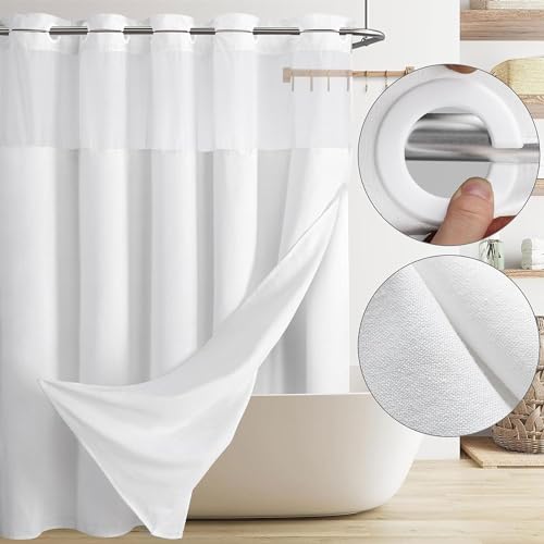 Das Einrastfutter bietet eine einfache und schnelle An- und Abnahme des Vorhangs. Die eingebaute Ösen ermöglichen es Ihnen, den Duschvorhang einfach aufzuhängen, ohne die Duschstange zu entfernen.