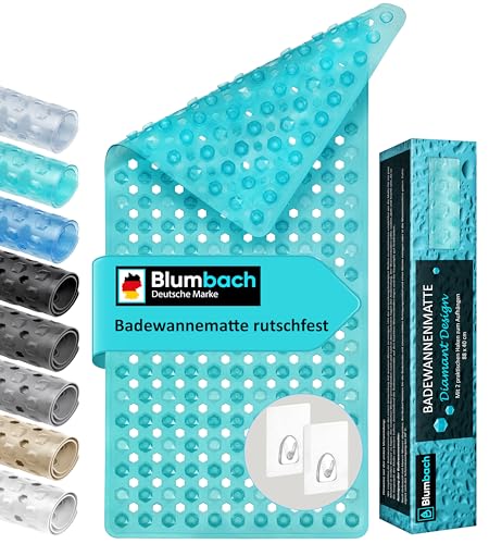 Blumbach® Badewannenmatte rutschfest 88x40cm – inkl. 2 Haken zum Trocknen | 100% BPA-frei, Sicher für Kinder & Senioren | Badematte rutschfest 200+ Saugnäpfe | Schimmelresistent, Maschinenwaschbar