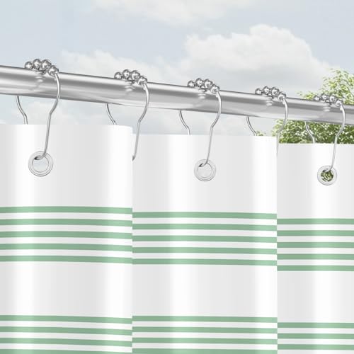 Unser Duschvorhang bietet Ihnen eine hervorragende Lösung für Ihr Badezimmer. Mit seiner prägnanten, hellgrün-gestreiften Optik wird er sicherlich ein Hingucker in Ihrem Bad.