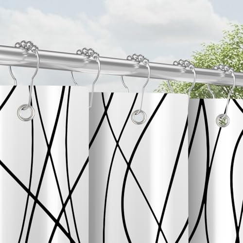 Duschvorhang mit Metall Duschvorhangringe 180×200 cm Schwarz Kurven, Beschwerter Saum Antischimmel Textil, Wasserabweisend, Waschbar Polyester Badevorhänge Set mit Ösen für Badezimmer, Badewanne