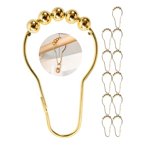 Unser Set mit 12 Duschvorhangringen in Goldfarben ist ideal für alle Duschen. Die Ringe sind leicht anzubringen und bieten eine moderne Optik.