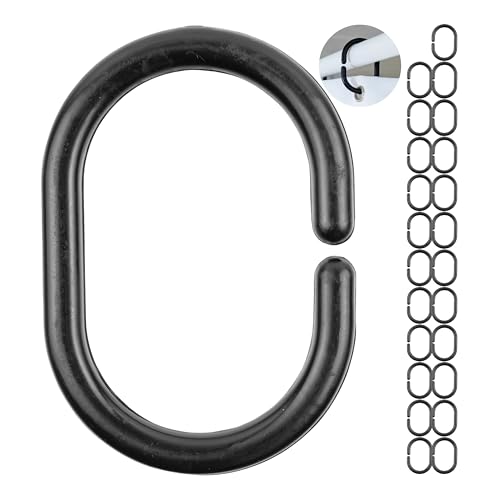 Duschvorhang Ringe, 24 Stück, in Schwarz, Ø 4,6 x 2,9 cm innen, für Duschvorhangstangen, Schwarze Duschringe, aus stabilem Kunststoff, Ring Dusche Duschvorhang, Duschvorhangringe, Duschhaken C-Ring