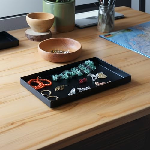Edelstahl Dekotablett schwarz | Ablageschale für Küche und Bad, rechteckig (Groß) | Deko Tablett schwarz matt | Bad Organizer, auch als Schmuckschale geeignet | Badezimmer Deko