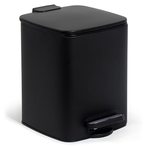 GREELUE Kosmetikeimer 6L, Mülleimer bad, Badmülleimer mit Deckel, (Soft Close) Tretmülleimer aus Metall für Badezimmer, WC, Schlafzimmer (Schwarz, 24 x 19,5 x 25 cm)