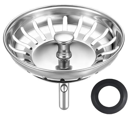 Hier haben wir das HUAERSICO Küchenspülen Abflussstopfen mit sieb Ø 79/80 mm, Spülbecken stöpsel, Siebkörbchen und Abflusssieb spüle küche, Franke Blanco spüle zubehör. Das Edelstahl-Sieb Abflussstopfen passt in fast alle Waschbecken(Zwei Siebkörbchen Lippendichtung ).