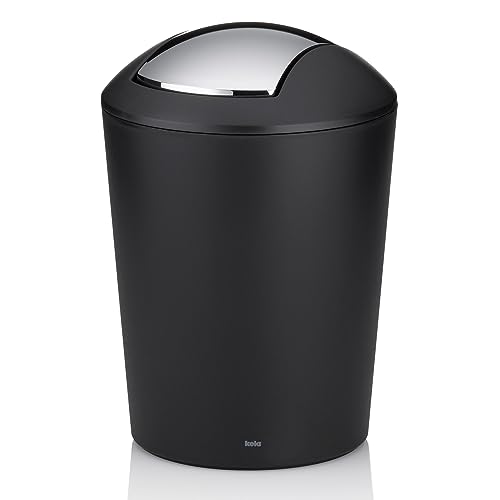 Der kela Schwingdeckeleimer ist nicht nur praktisch, sondern auch stilvoll gestaltet. Die matt-schwarze Farbe sorgt für ein elegantes Aussehen im Badezimmer und passt sich jeder Dekoration an.