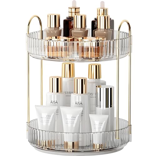 Make Up Kosmtik Organizer, 360° Drehbar Schminktisch Organizer, Multifunktion Schmink Aufbewahrungssystem Skincare für Dresser Schlafzimmer Badezimmer, 2 Schichten, Transparent