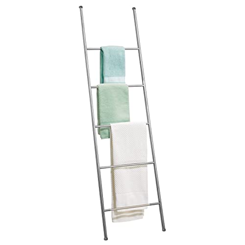 Die mDesign Handtuchleiter aus rostfreiem Edelstahl ist ein praktisches Lösung für Ihre Badezimmer-Organisation. Sie bietet 5 Handtuchstangen, die genug Platz für Ihre Handtücher, Badtücher und Kleidung bieten.