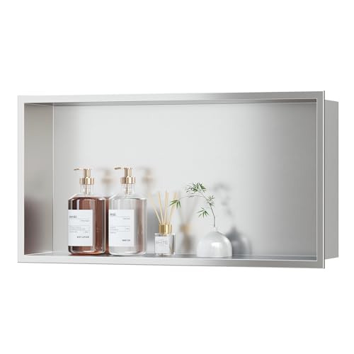 Unsere Wandnische Edelstahl ist ideal für die Organisation und Aufbewahrung von Seife, Shampoo und anderen Duschutensilien. Die hochwertige Konstruktion aus gebürstetem Edelstahl SUS 304 garantiert eine lange Lebensdauer und ist leicht zu reinigen.