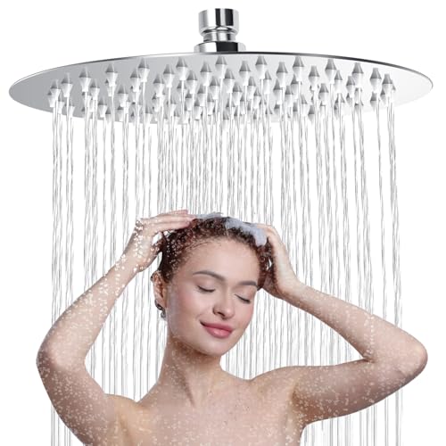 Regendusche Runden 12 Zoll, 304 Edelstahl Duschkopf Regendusche, Wassersparend Regenduschkopf mit 90 Anti Kalk Düsen, 360° Verstellbarer Regendusche Duschkopf