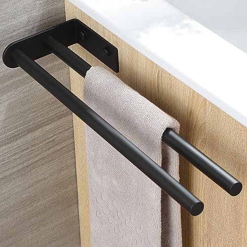 RUICER Handtuchhalter Zweiarmig Edelstahl Handtuchstange Doppelt, Badetuchhalter für Bad küche Wand, Handtuchständer 40 cm Wandmontage (Schwarz)