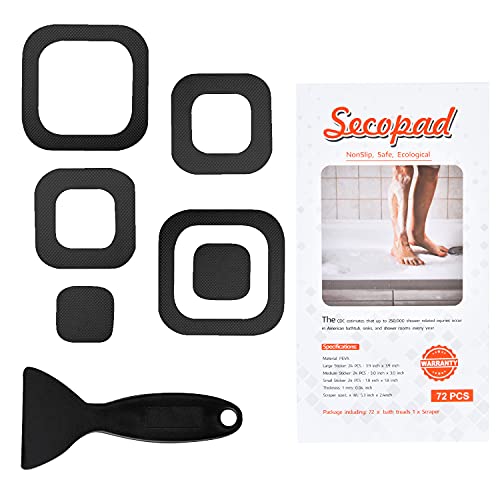 Secopad rutschfeste Badewannen-Aufkleber, 72 Stück, Sicherheitsaufkleber für Badezimmer, Badewannen, Duschen, Trittflächen mit Schaber (Schwarz)