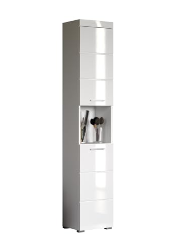 Ein zeitloses Design in Weiß Hochglanz, das sich harmonisch in unterschiedliche Einrichtungsstile integriert. Der Schrank ist ideal für kleine Bäder, Nischen oder Flure und lässt sich auch in kleinen Räumen mühelos integrieren, dank seiner geringen Tiefe.
