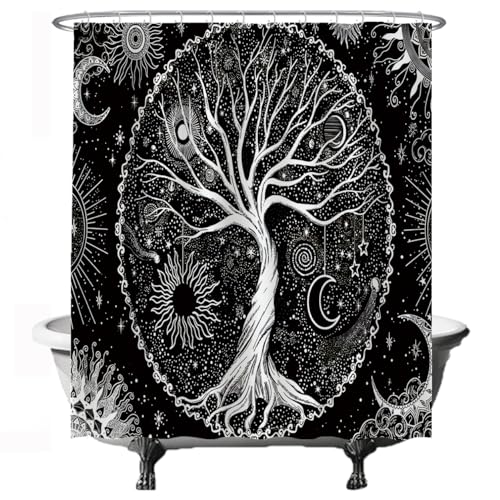Ulticool Duschvorhang – Baum des Lebens Schwarz Weiß