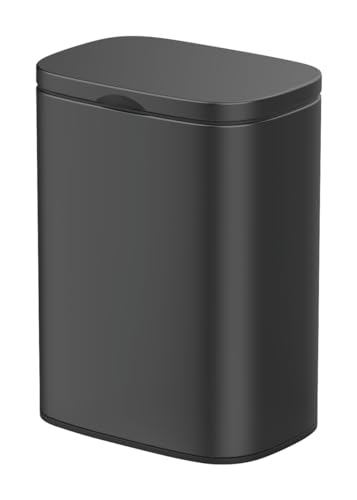 WENKO Wand-Kosmetikeimer Sare 5 Liter, Mülleimer mit Deckel und Easy-Close Absenkautomatik, Badezimmer-Eimer aus lackiertem Stahl zur Befestigung ohne bohren, 21,5 x 29,5 x 19 cm, Schwarz Matt