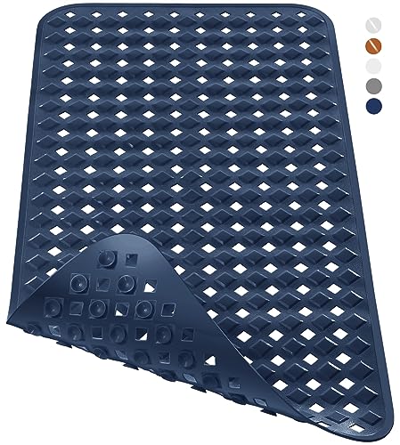 Yimobra Badewannenmatte, Extra Lang Badematte für Wanne Anti-Rutsch mit Abflusslöchern, Saugnäpfen, Phthalatfrei, Latexfrei, BPA-frei und Maschinenwaschbar (88 x 40 cm, Marineblau)