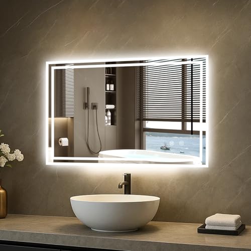 Youyijia Spiegel Mit Beleuchtung,90×70 cm Badspiegel Mit Beleuchtung Mit Touch-Schalter Beschlagfrei, 3 Lichtfarben Dimmbar, 3500K-6500K Badezimmerspiegel, Spiegel (90×70 cm Beschlagfrei+Dimmbar)
